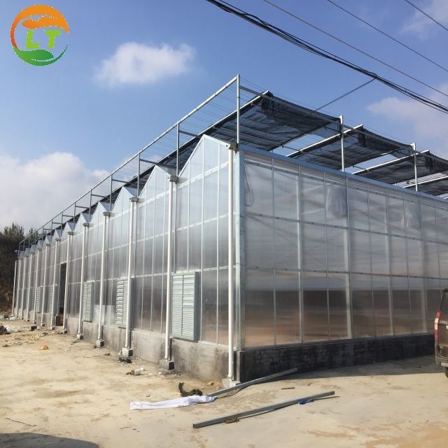 La serre en polycarbonate a une structure stable, une belle forme, une version lisse, des performances d'isolation thermique remarquables, une vitesse de transmission de la lumière modérée, de nombreuses rain grooves, une grande portée,volume de drainage, une forte résistance au vent, adaptée à la zone de fort vent et de pluie.longue durée de vie, résistance à la traction.